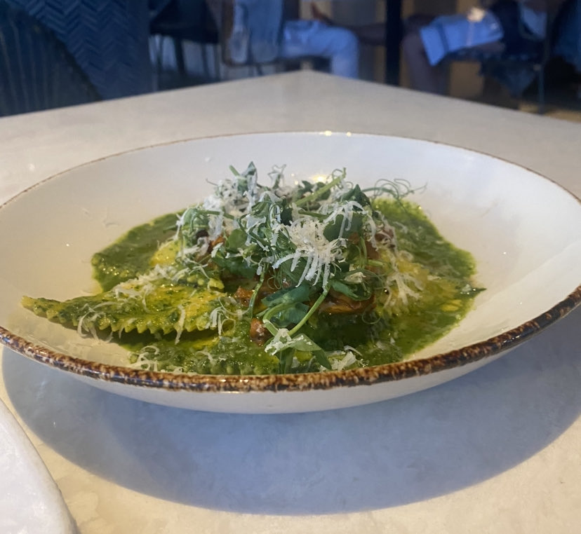 Unimpressed. That’s how I felt eating this dish. Maybe I have an unrefined palate, maybe I’m ordering the wrong dishes, but I have yet to go to an Italian restaurant and be satisfied with the pasta I was served. The pesto was good and I wish I had held onto it for later to dip my pizza crust in (credit to my oh so smart dining partner) but the ravioli itself was seriously underwhelming. On the menu it is described as a “house-made 4 cheese ravioli”. Does this mean that the ravioli is a 4/10? Probably not, but that’s what it was for me. The mushrooms on top were nice and paired well with the pesto. Would not order again.